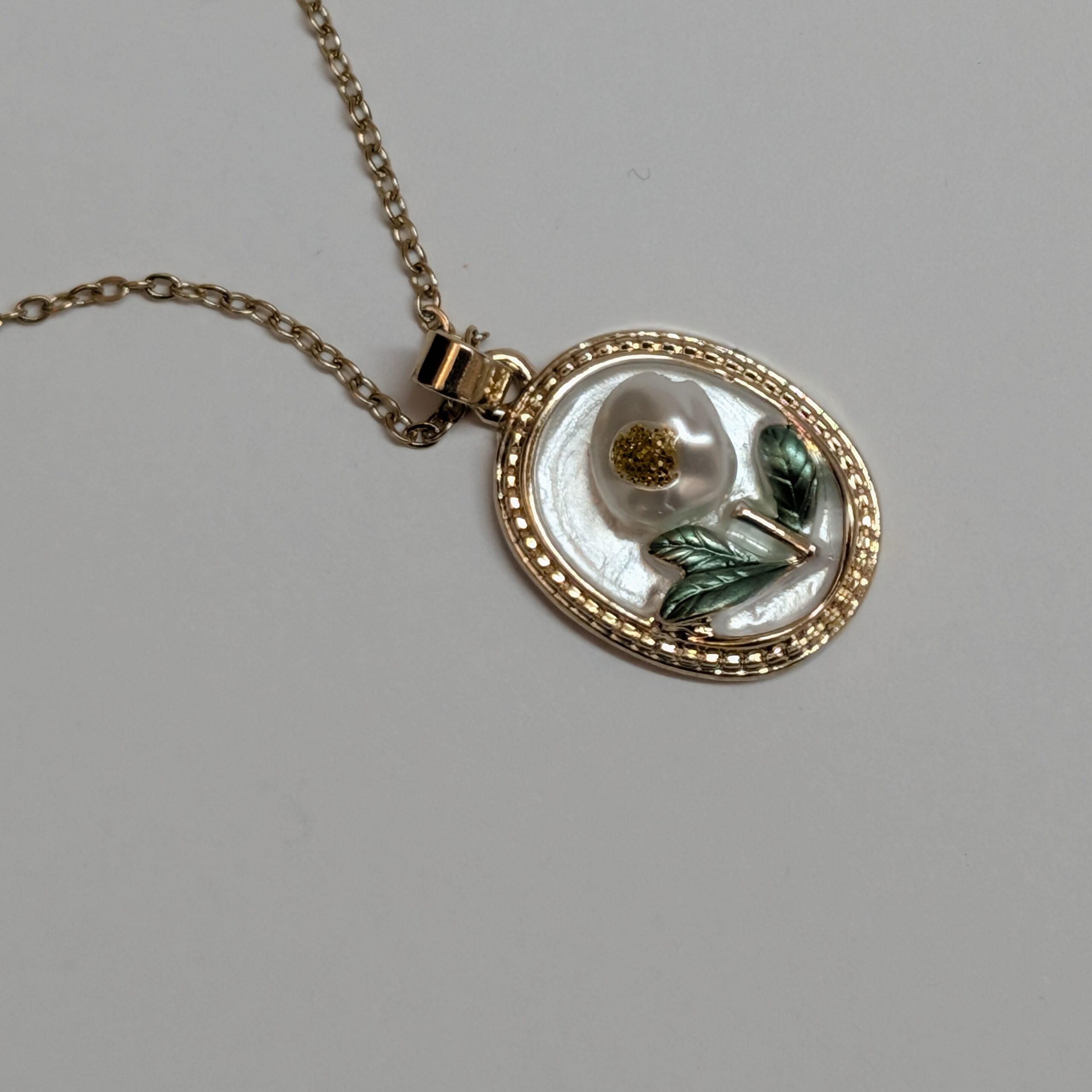 Ethereal Tulip Pearl Pendant ? Floral Cameo Necklace with 3D Enamel and Gold-Toned Chain