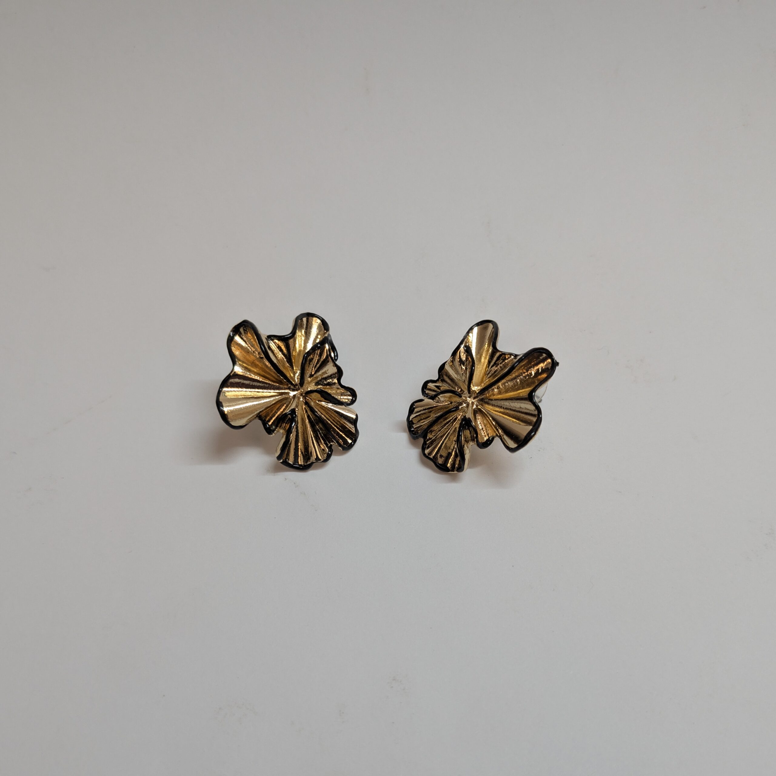 Golden Bloom Ruffled Studs ? Sculptural Gold-Toned Earrings with Black Edging