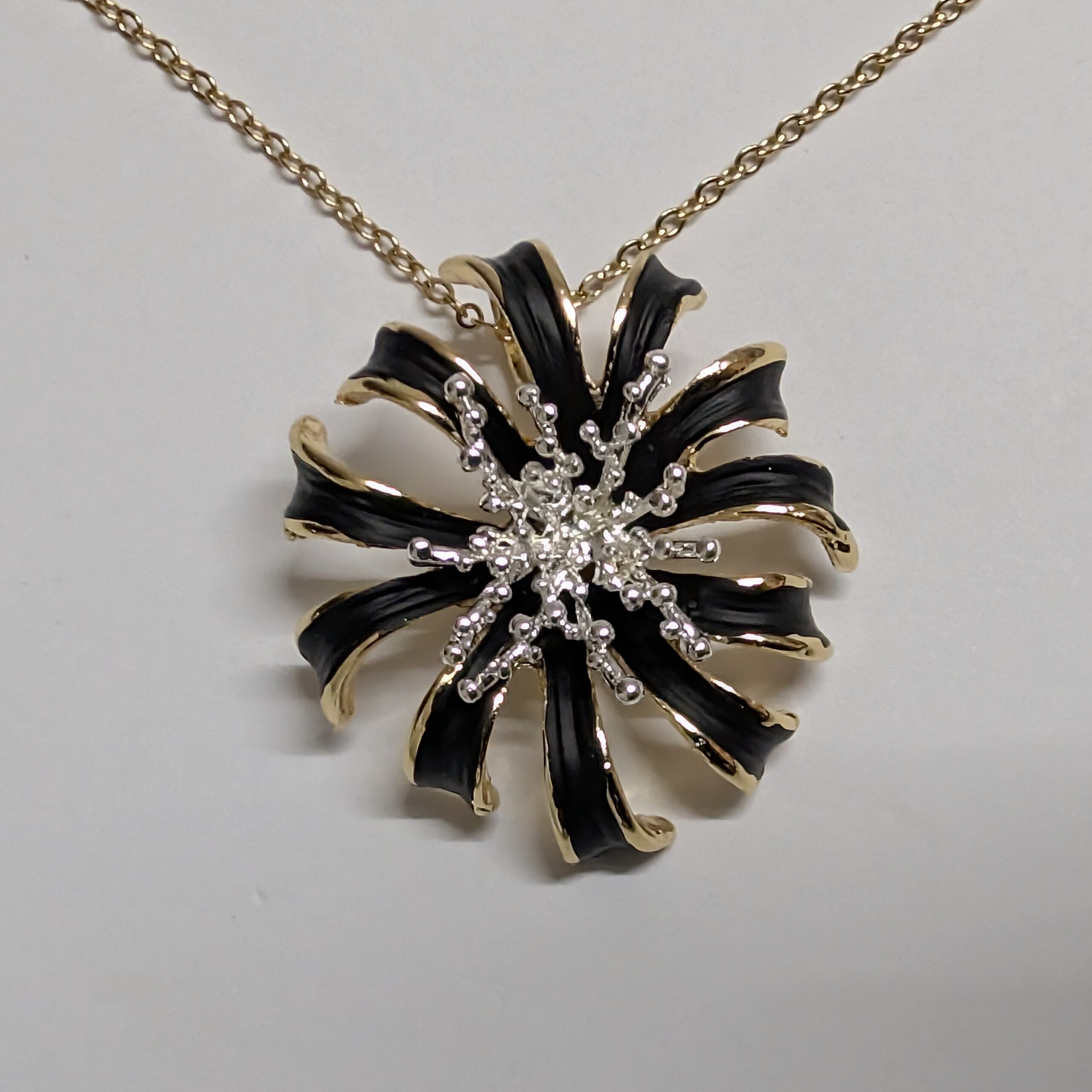 Infuse your wardrobe with avant-garde elegance with our Midnight Starburst Floral Necklace. This piece is designed for the woman who loves bold, architectural jewelry that commands attention.