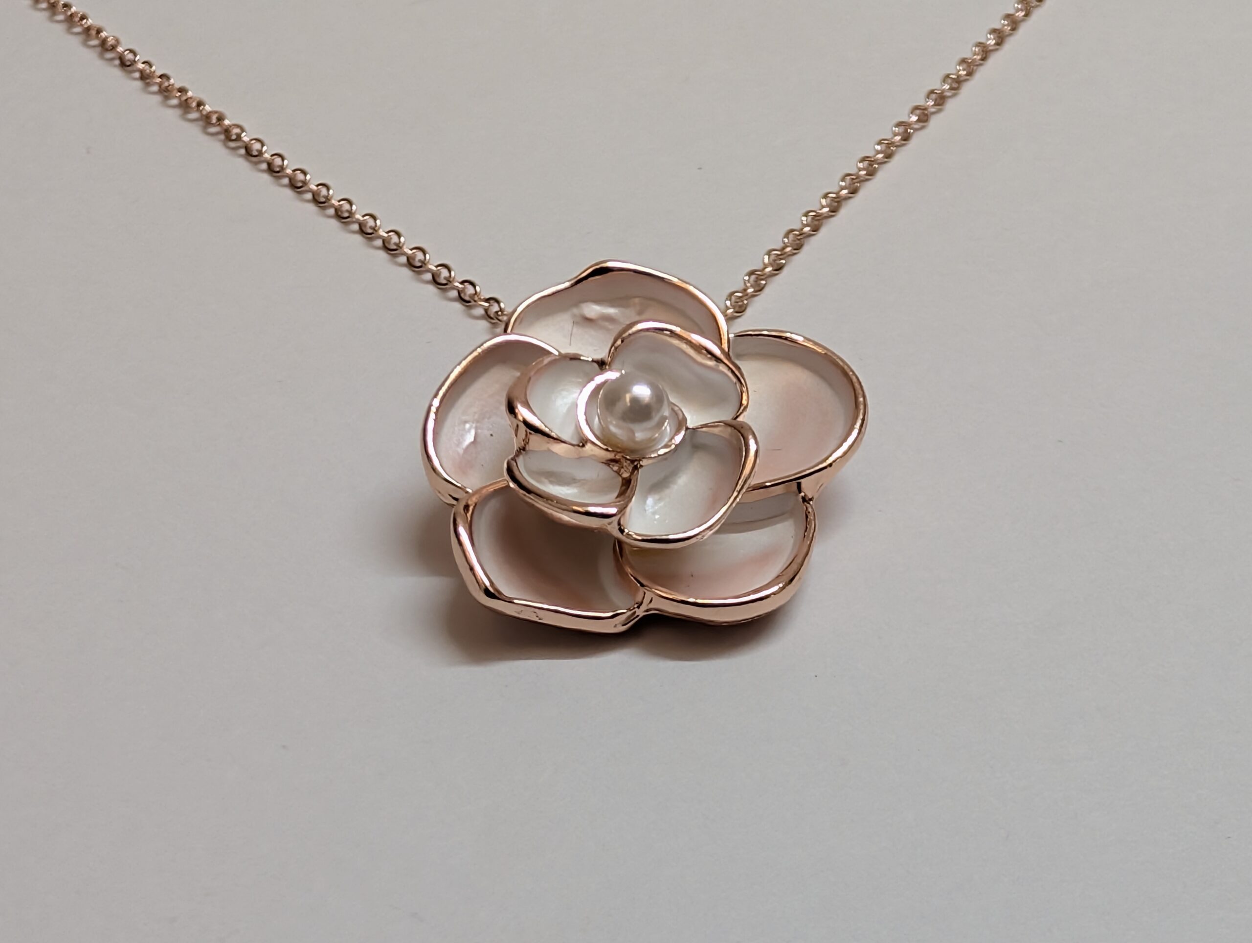 Infuse your wardrobe with the charm of a spring garden with our Peach Camellia Pearl Pendant. This necklace is a masterclass in delicate craftsmanship, designed for those who appreciate romantic silhouettes and high-shine finishes.