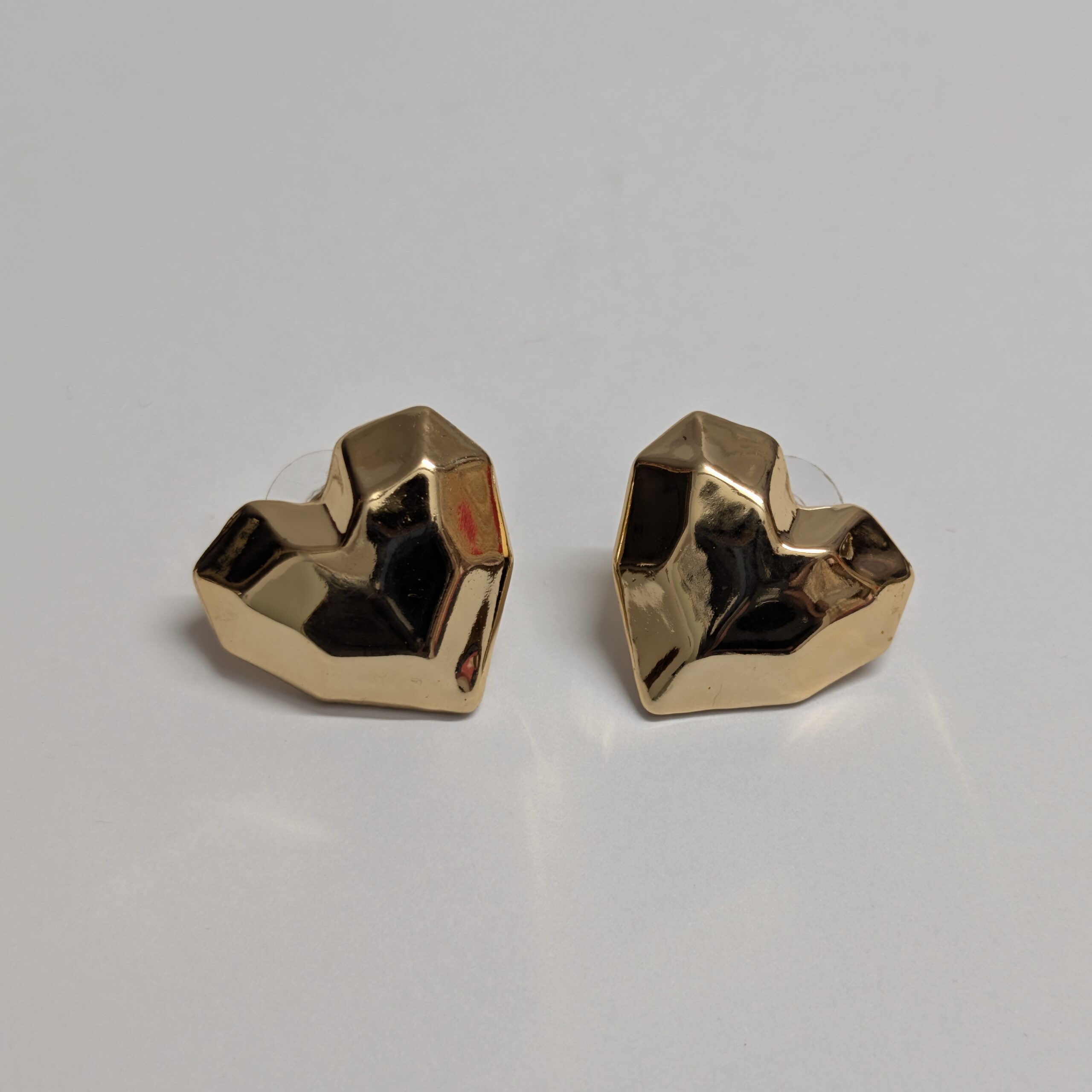 The standout feature of these earrings is their sculptural, faceted surface. Instead of a flat heart, these studs are engineered with sharp, geometric angles that create a stunning multi-dimensional effect. This 3D architecture allows the gold-toned finish to catch and reflect light from multiple directions, resulting in a brilliant, mirror-like glow.