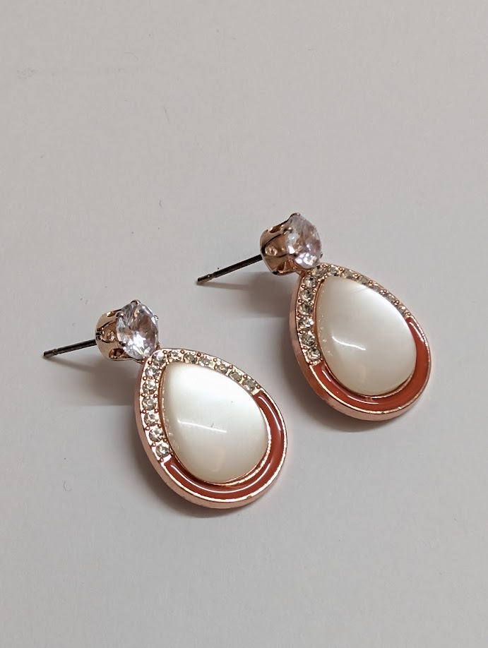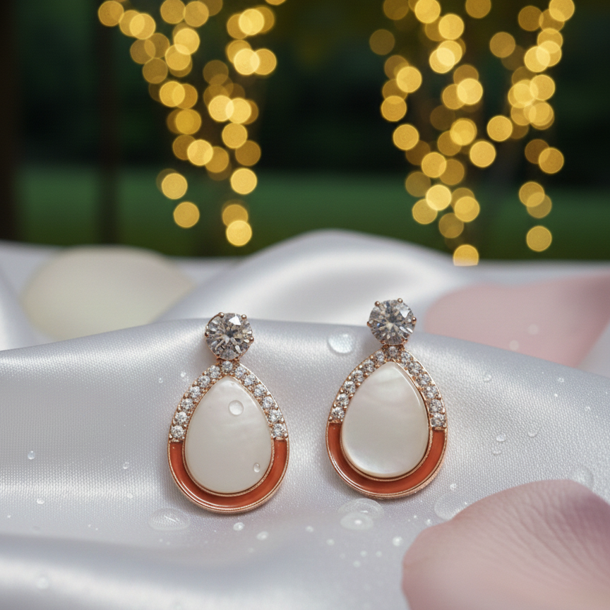 Elegant Rose-Gold Teardrop Earrings with Mother-of-Pearl Inlay